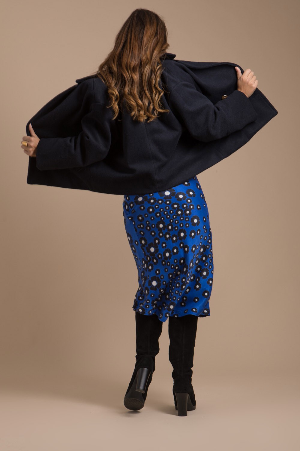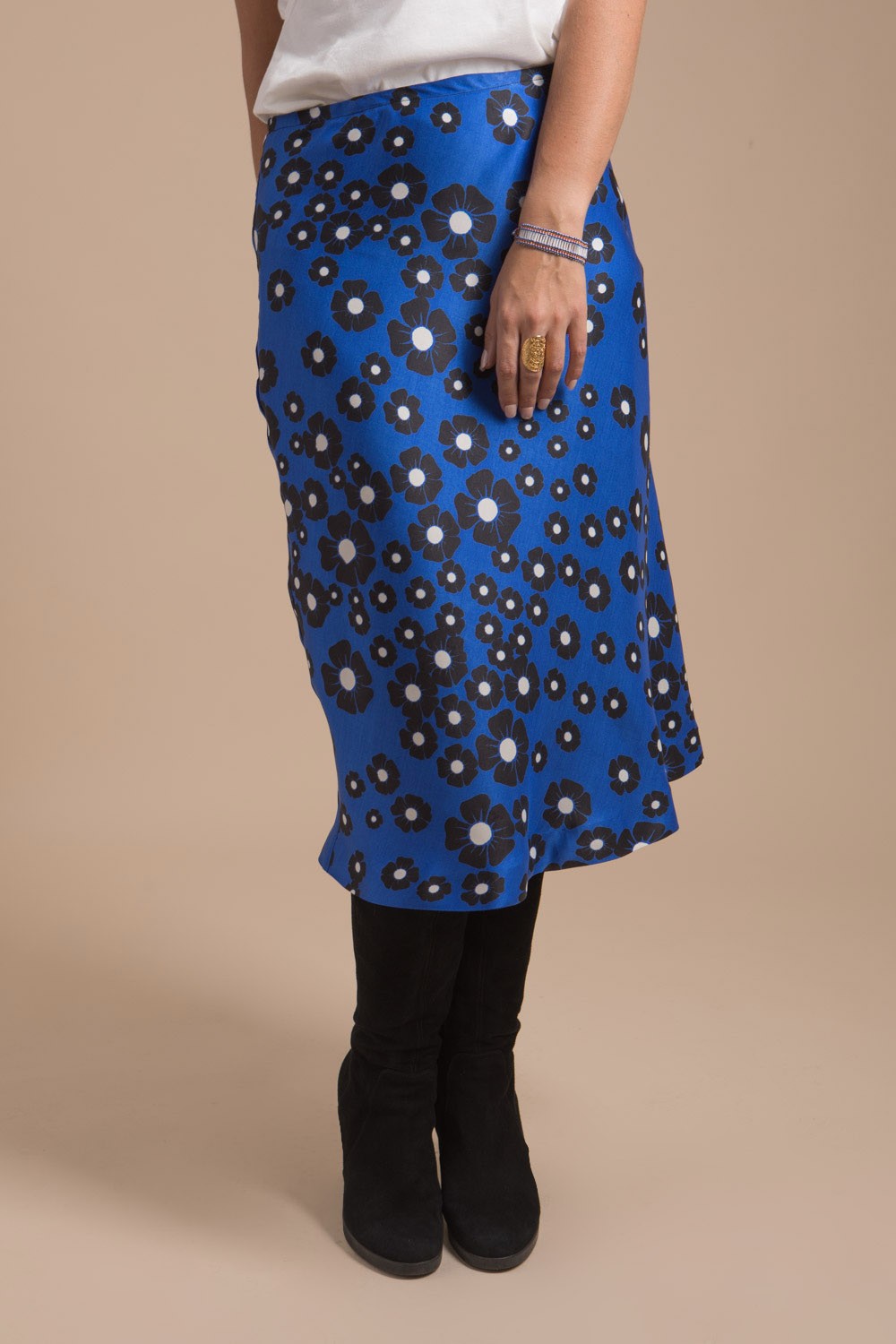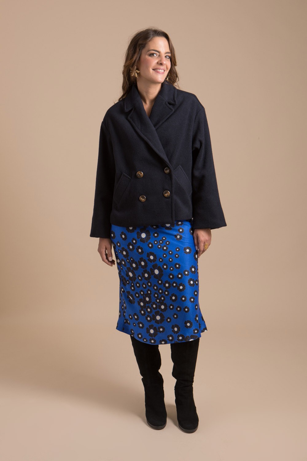 Jupe femme longueur midi en forme sirène confectionnée dans un tissu luxueux imprimé bleu satiné d’origine Français au tombé somptueuse. Cette jolie jupe est créée et fabriquée dans notre atelier en France. Elle entièrement doublée se ferme à l’aide d’un zip invisible sur le côté. Sa belle couleur bleu navy donnera du peps à vos looks hivernaux. Tissu 100% Français.
