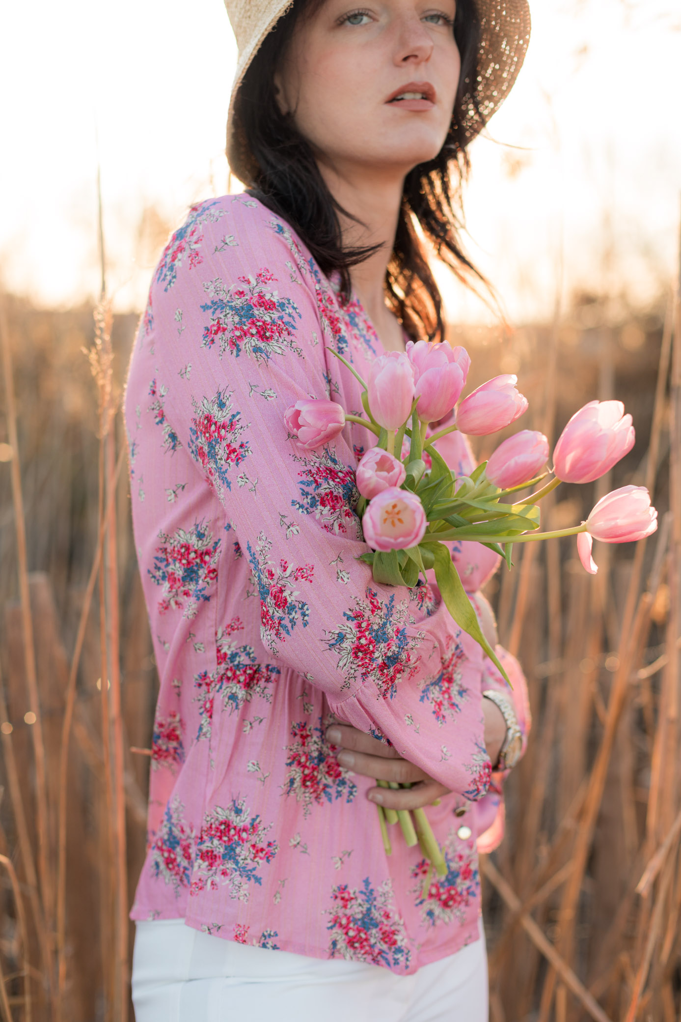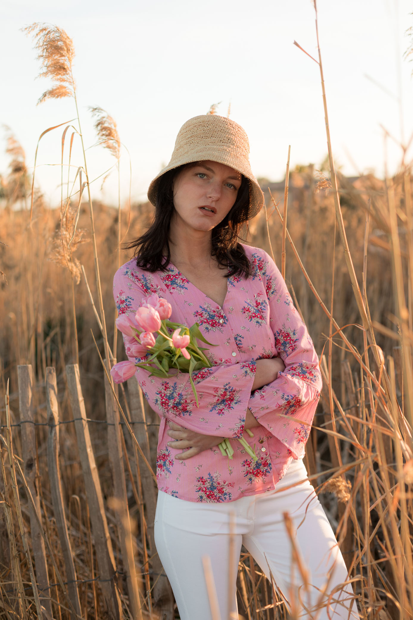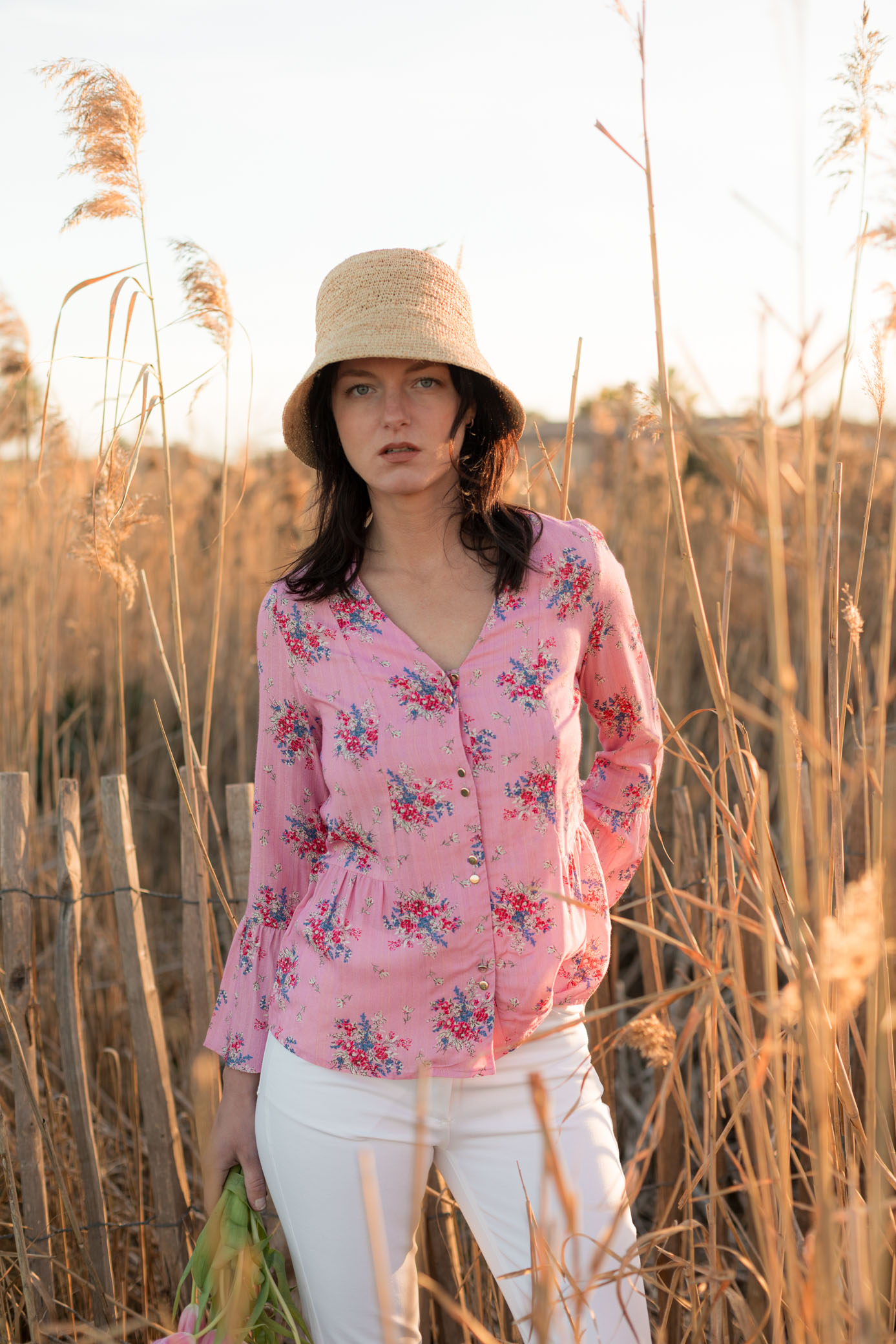 Blouse femme style chic bohème, conçue dans un bel imprimé coloré. Made In France.