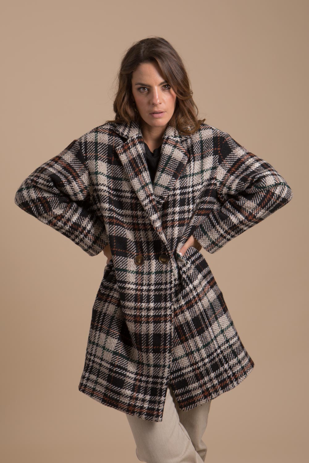Manteau femme réalisé dans un beau tissu en tweed imprimé carreaux en laine est un joli bijou de la mode hivernale.