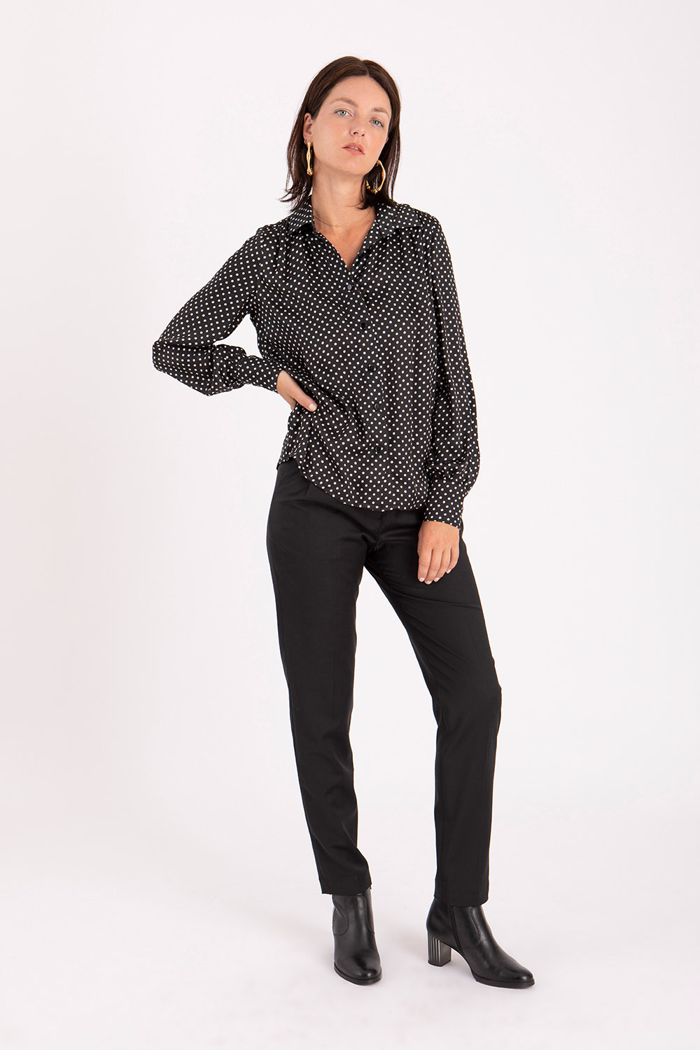 Pantalon noir en laine et élasthanne pour plus de confort. Made in France