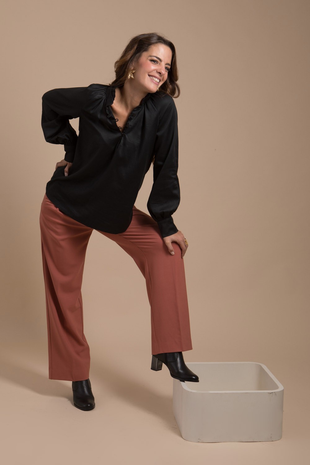 Pantalon Théo élégant et raffiné made-in- France. Il est conçu avec une attention minutieuse aux détails. Ce pantalon à une chute et une forme flatteuse qui convient à toutes les morphologies et met va leur les jambes. Il est fabriqué dans notre atelier à Montpellier dans un beau tissu en laine élasthanne, il offre confort, style et vous maintient au chaud durant la saison hivernale. Pour un look stylé, associez-le avec la blouse Adèle. Ce joli pantalon est créé et fabriqué dans notre atelier à Montpellier en France.